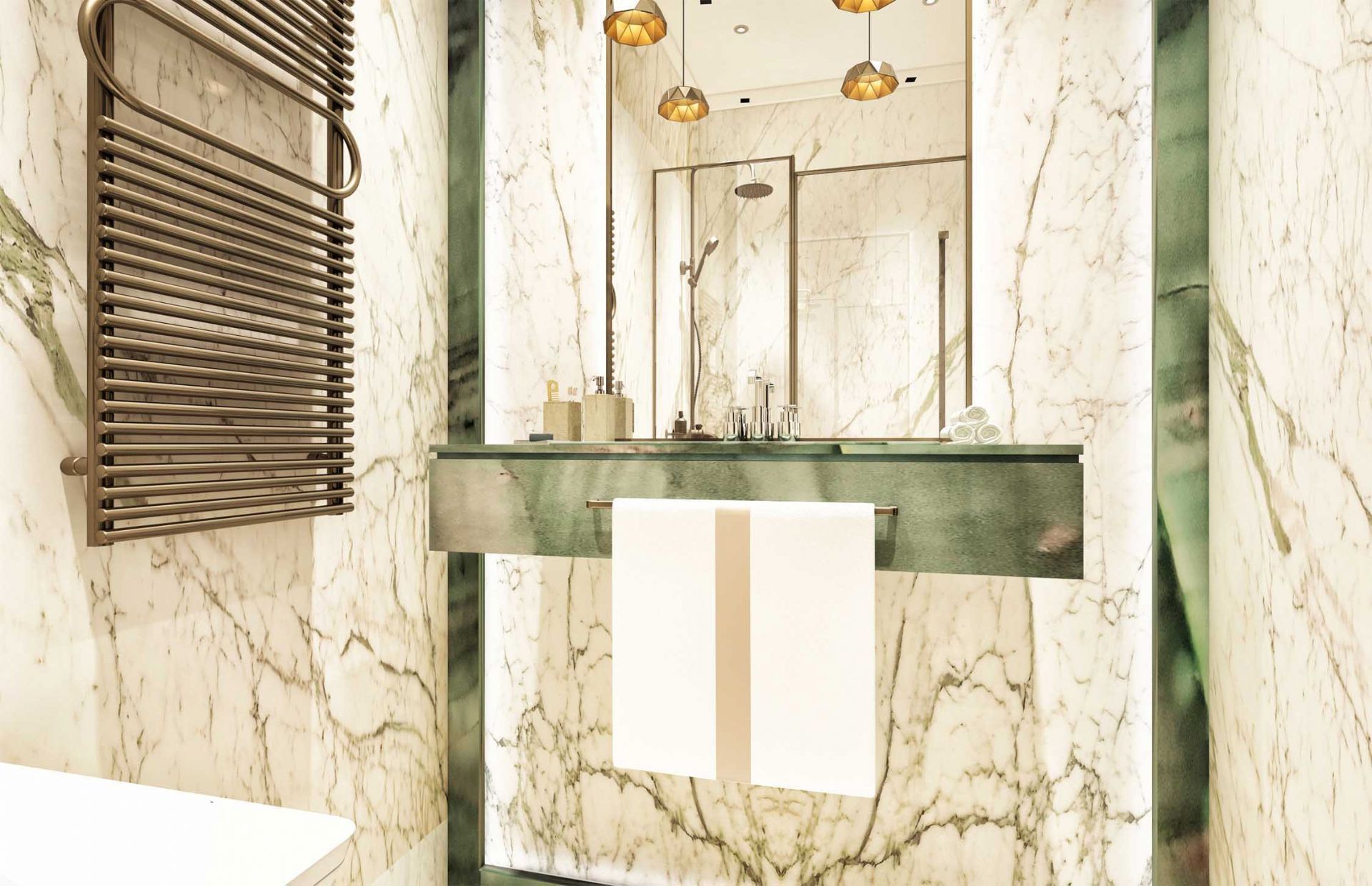 Calacatta Verde Marble is a breathtaking natural stone that blends artistic veining with luxurious appeal. Its vivid green veining on a crisp white background gives a dramatic, high-end look perfect for refined interior spaces. Inspired by the iconic Italian Calacatta style, this marble is brought to life by Marven Stone’s expert selection and precision craftsmanship.