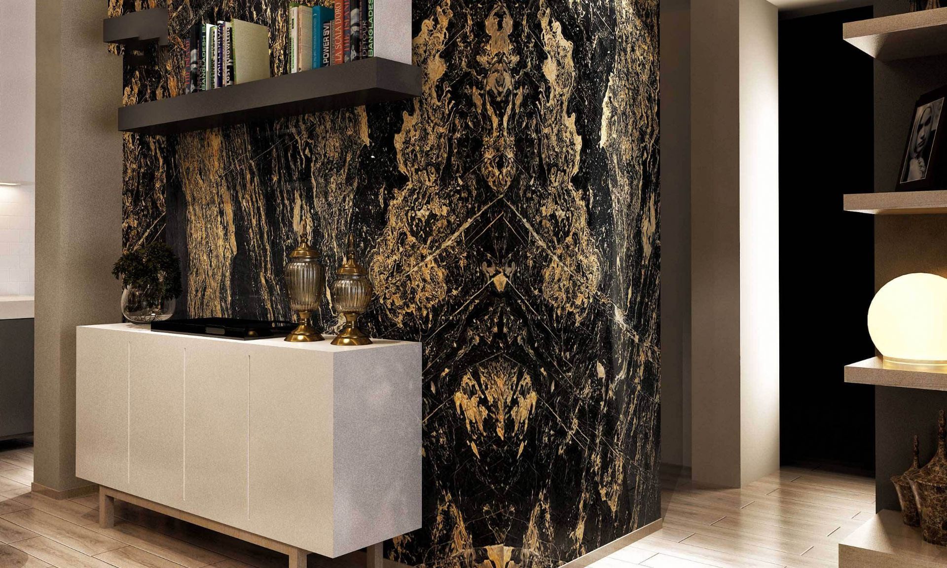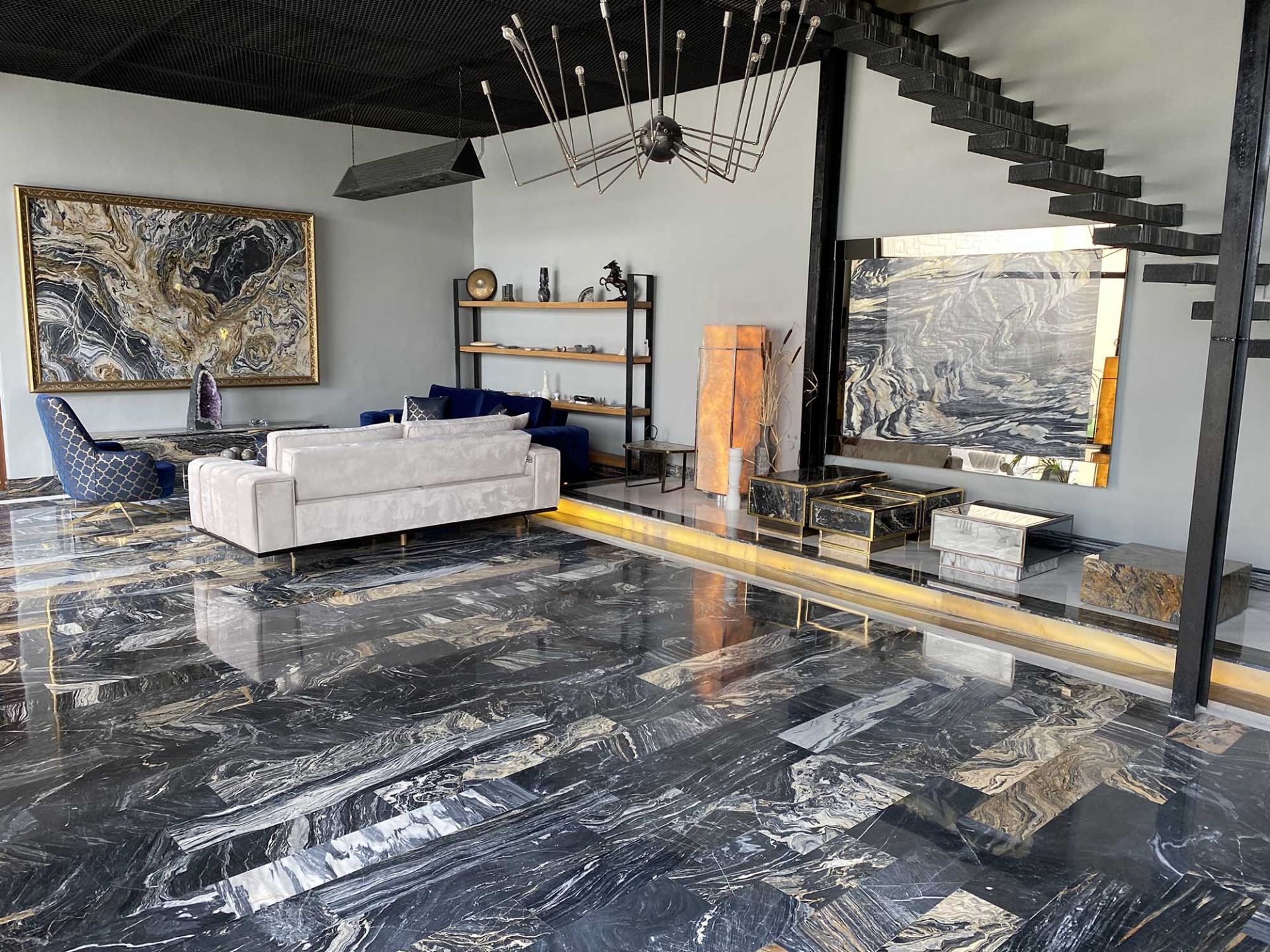 Marven Stone exports Nero Picasso Marble to various countries including the USA, UK, Germany, France, Australia, Saudi Arabia, and Canada. This marble is widely used in luxury hotels, villas, gallery spaces, and upscale retail interiors due to its dramatic visual appeal.