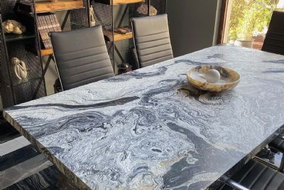 Nero Picasso Marble is a striking Turkish natural stone named after the iconic painter Pablo Picasso, symbolizing the fusion of art and nature. Featuring bold white, grey, and silver veining on a deep black background, this marble makes a dramatic visual impact and is a favorite for luxury architectural designs.